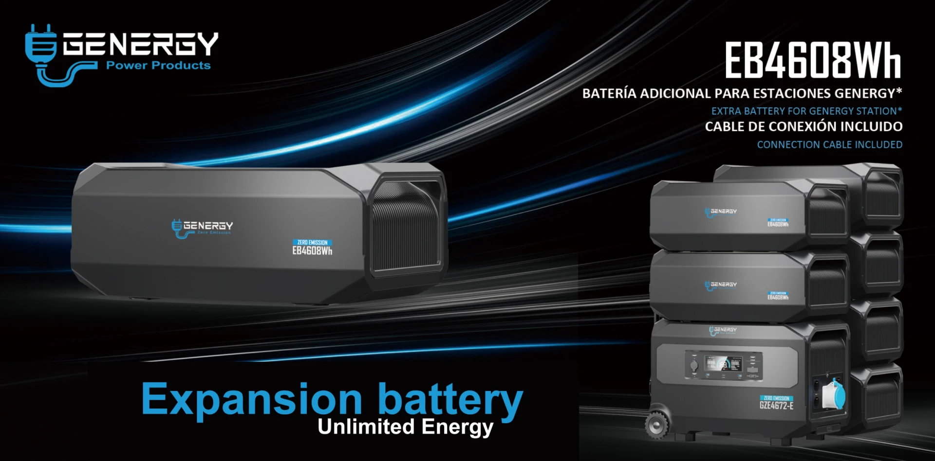 La batería EB4608Wh es compatible con el generador solar GZE4672-E. Se pueden conexionar hasta 4 baterías en serie para aumentar la capacidad de almacenamiento de sistema hasta los 18kWh.