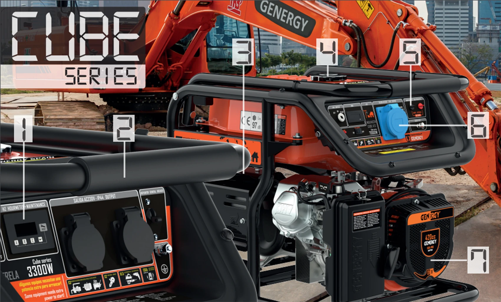 Muestra digitalmente el voltaje, la frecuencia y las horas de trabajo parciales y acumuladas. Además, avisa al usuario de los mantenimientos necesarios.